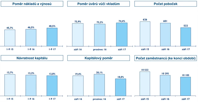 Česká spořitelna - vybrané ukazatele (3Q2017), zdroj: ČS