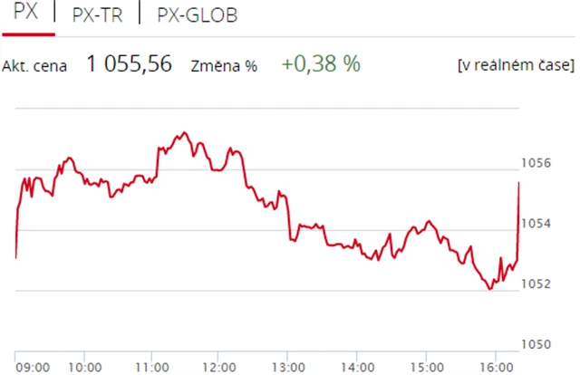 Pražská burza se v pondělí odrazila od ztráty z minulého týdne, když index PX vzrostl o 0,38 % na 1 055,56 bodu. Nahoru ji táhly energetická skupina ČEZ, Komerční banka a MONETA Money Bank, nedařilo se naopak textilce Pegas Nonwovens a Erste Group Bank. Objem obchodů byl s 349 miliony korun podprůměrný.