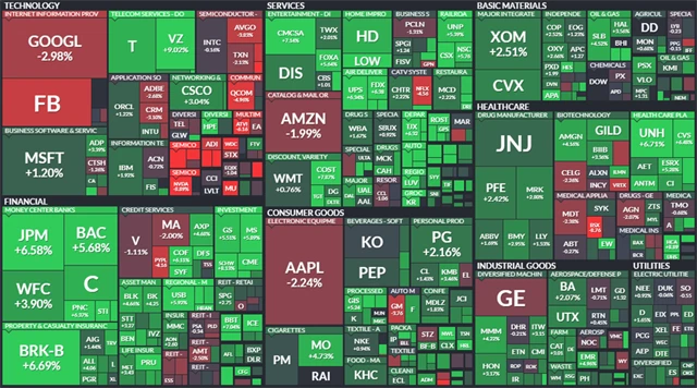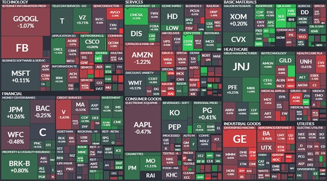 Index Dow odepsal 0,17 % na 24 230,70 bodu, širší index S&P 500 klesl o 0,21 % na 2 642,10 bodu a index technologického trhu Nasdaq Composite se snížil o 0,38 % na 6 847,59 bodu. Index volatility VIX vzrostl o 1,33 % na 11,43 bodu a výnos 10letých vládních dluhopisů USA klesl o téměř pět bazických bodů na 2,361 %. Dařilo se energetickému sektoru, výrazně naopak klesly sektor základních materiálů a průmyslové odvětví.