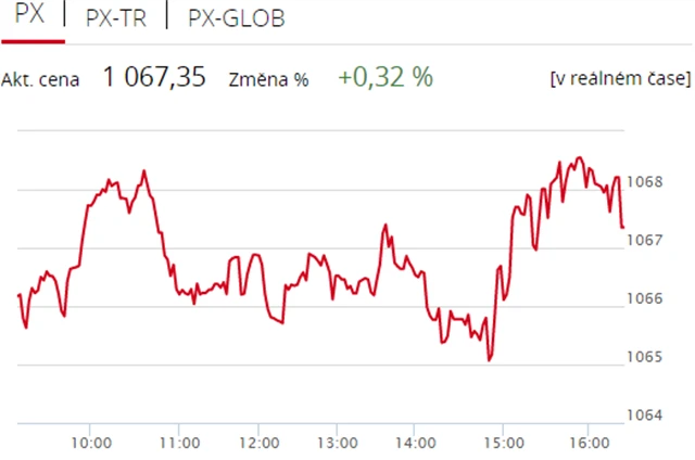Pražská burza burza v pondělí navázala na ziskový závěr minulého týdne, když index PX stoupl o 0,32 % na 1 067,35 bodu. Nahoru burzu táhly Komerční banka a MONETA Money Bank, nedařilo se naopak energetické skupině ČEZ. Objem obchodů byl s 279 miliony korun výrazně podprůměrný.