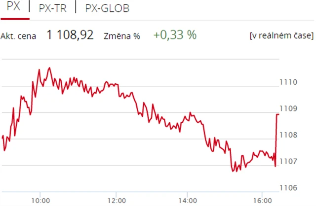 Pražská burza v pondělí počtvrté v řadě zpevnila, když index PX získal 0,33 % na 1 108,92 bodu. Nahoru burzu táhly Komerční banka a energetická skupina ČEZ, nedařilo se naopak likérce Stock Spirits. Objem obchodů byl s necelými 417 miliony korun podprůměrný.