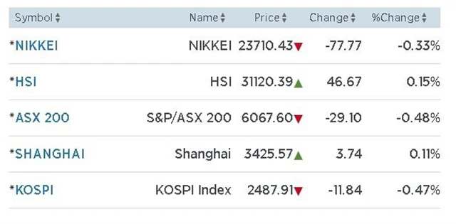 Pouze čínské trhy dosáhly mírných zisků. Hongkongský index Hang Seng se pohyboval kolem nuly a uzavřel s minimálnim ziskem 0,03 procenta. Trhy pevninské Číny uzavřely v kladném teritoriu: šanghajská burza si připsala 0,11 procenta a šenčenská 0,38 procenta.