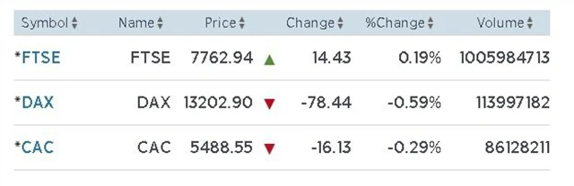 Celoevropský akciový index STOXX Europe 600 zakončil obchodování se ztrátou 0,34 %. Nejhoršími sektory byly telekomunikace a maloobchod, jež odepsaly 1,49 %, respektive 1,37 %.