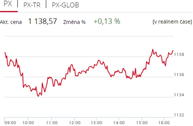 Pražská burza ve středu navázala na zisk z předcházejícího dne, když index PX stoupl o 0,13 % na 1 138,57 bodu. Nahoru burzu táhly Erste Group Bank a textilka Pegas Nonwovens, nedařilo se naopak energetické skupině ČEZ, Monetě Money Bank a Komerční bance. Objem obchodů byl s 643 miliony korun nadprůměrný.