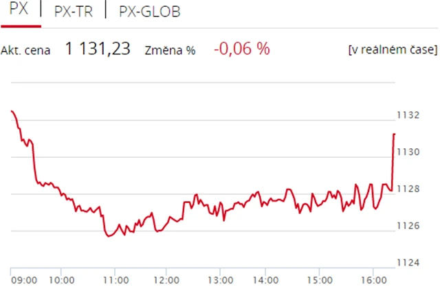 Pražská burza v pondělí mírně prohloubila ztrátu ze závěru minulého týdne, když index PX odepsal 0,06 % na 1 131,23 bodu. Dolů burzu stáhly energetická skupina ČEZ, Erste Group Bank a MONETA Money Bank, dařilo se naopak Komerční bance a mediální společnosti CME. Objem obchodů byl s 507 miliony korun mírně podprůměrný.