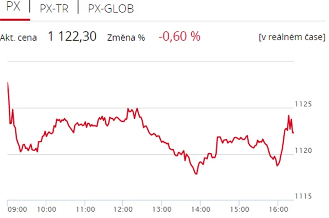 Pražská burza v pondělí prohloubila ztrátu z minulého týdne, když index PX klesl o 0,6 % na 1 122,3 bodu. Dolů burzu stáhly polostátní společnost ČEZ, Komerční banka a MONETA Money Bank, dařilo se naopak textilce Pegas Nonwovens. Objem obchodů byl s 572 miliony korun mírně nadprůměrný.