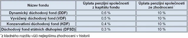 MŠ: Za správu a zhodnocování prostředků platí klient penzijní společnosti poplatky, které jsou omezeny zákonem. Přesnou výši poplatků ukazuje přehledná tabulka.