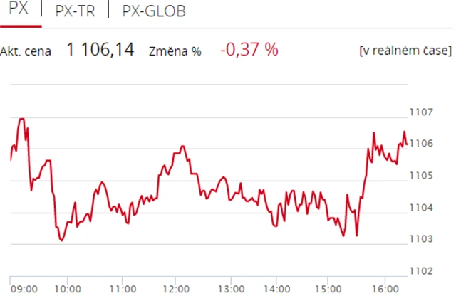 Pražská burza v úterý prohloubila ztrátu z pondělní seance, když index PX přišel o 0,37 % na 1 106,14 bodu. Dolů burzu stáhly finanční tituly, dařilo se naopak energetické skupině ČEZ. Objem obchodů byl s 412 miliony korun podprůměrný.
