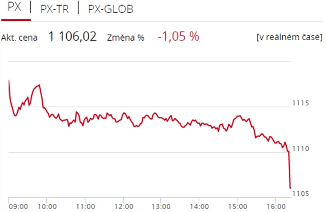 Pražská burza v pátek prohloubila ztrátu ze čtvrtečního obchodování, když index PX odepsal 1,05 % na 1 106,02 bodu. Dolů burzu stáhly cenné papíry energetické skupiny ČEZ, Komerční banky a Monety Money Bank, dařilo se naopak tabákové firmě Philip Morris ČR. Objem obchodů byl s 906 miliony korun nadprůměrný.