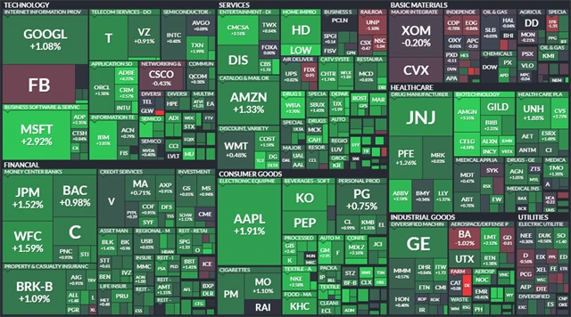 V plusu uzavřely všechny hlavní sektory s výjimkou energetického odvětví. Nejlepší výkon podaly sektory cyklického a necyklického spotřebního zboží a odvětví zdravotní péče.