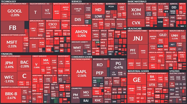 V červených číslech skončily všechny hlavní sektory, nejvýrazněji klesly průmyslové odvětví, technologický sektor a odvětví základních materiálů.