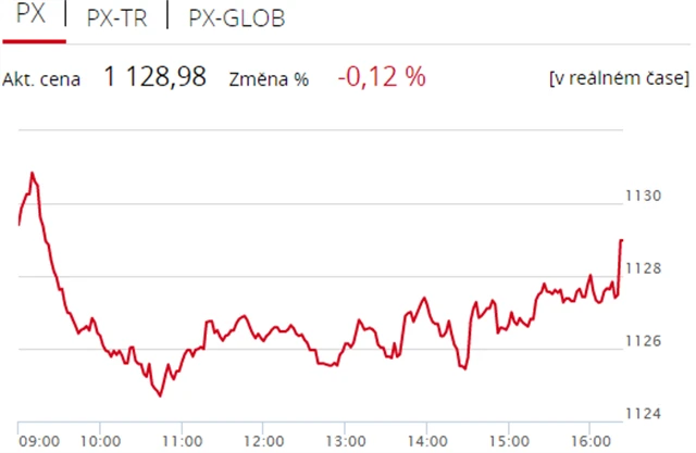 Pražská burza ve středu prohloubila ztrátu z úterního obchodování, když index PX klesl o 0,12 % na 1 128,98 bodu. Dolů burzu stáhly zejména akcie Erste Group Bank a energetické skupiny ČEZ, dařilo se naopak telefonnímu operátorovi O2 Czech Republic a textilce Pegas Nonwovens. Objem obchodů byl s 545 miliony korun průměrný.