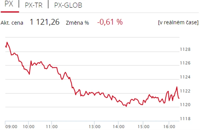 Pražská burza v pátek počtvrté v řadě oslabila, když index PX přišel o 0,61 % na 1 121,26 bodu. Dolů burzu stáhly zejména tabáková firma Philip Morris ČR a energetická skupina ČEZ, dařilo se naopak textilce Pegas Nonwovens. Objem obchodů byl s 610 miliony korun mírně nadprůměrný.