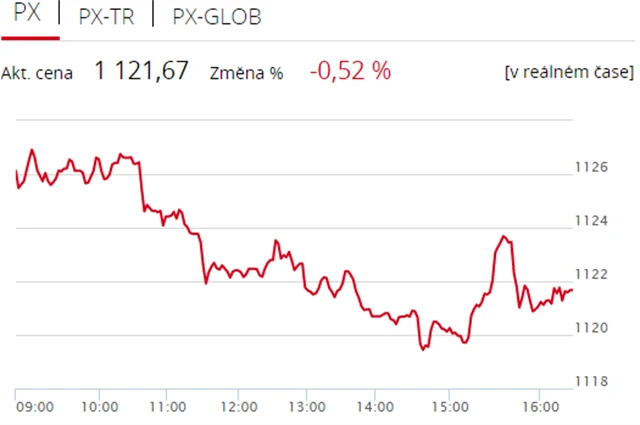 Pražská burza ve středu nenavázala na zisk z úterního obchodování, když index PX odepsal 0,52 % na 1 121,67 bodu. Dolů burzu stáhly zejména akcie Erste Group Bank a energetického gigantu ČEZ, o více než procento naopak stouply akcie nápojářské společnosti Kofola ČeskoSlovensko. Objem obchodů byl s necelými 413 miliony korun podprůměrný. (25. 4. 2018)