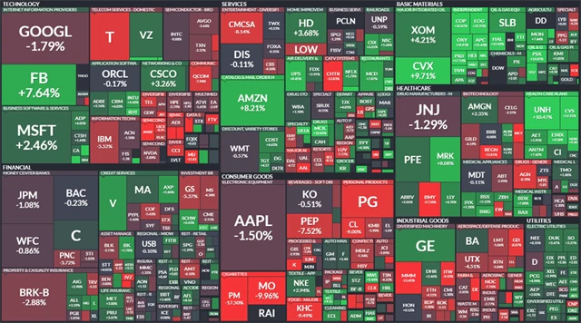 V červených číslech skončily všechny hlavní sektory s výjimkou odvětví energetiky, které se udrželo na zelené nule. Pokles vedly sektor zdravotní péče, průmyslové odvětví a sektor základních materiálů.