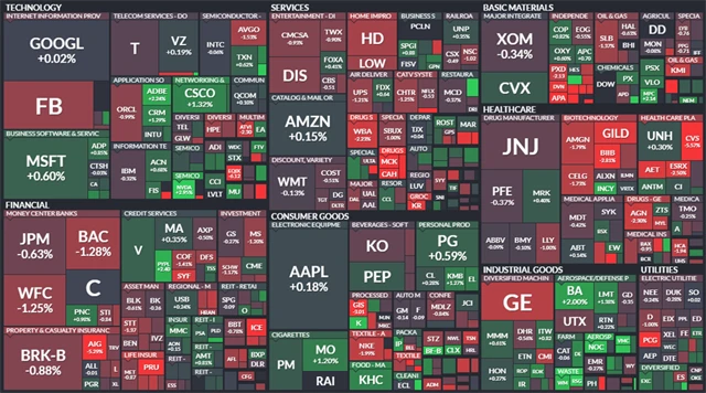 Z jednotlivých sektorů se dařilo průmyslu, technologiím a základním materiálům, výrazně naopak klesla odvětví financí a zdravotní péče.