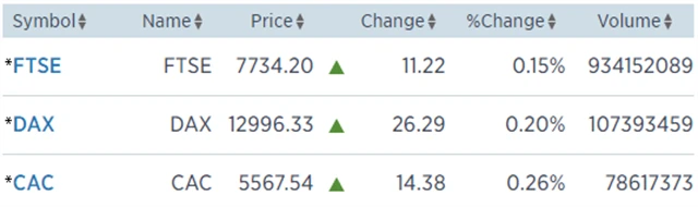 Regionální index STOXX Europe 600 stoupl o 0,22 % na 393,22 bodu, britský FTSE 100 získal 0,15 % na 7 734,2 bodu, francouzský CAC 40 vzrostl o 0,26 % na 5 567,54 bodu a německý DAX si polepšil o 0,2 % na 12 996,33 bodu. Hlavní index milánské burzy FTSE MIB však po výrocích členů budoucí italské vlády spadl o 2,32 % na 23 734,22 bodu.