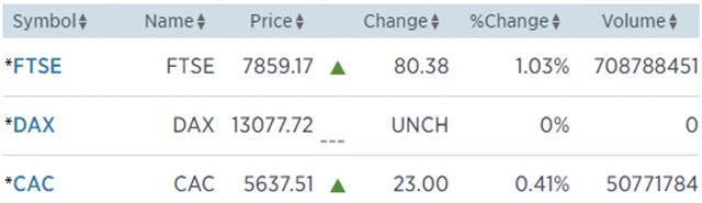 Regionální index STOXX Europe 600 zpevnil o 0,35 % na 396,07 bodu, britský FTSE 100 stoupl o 1,03 % na 7 859,17 bodu a francouzský CAC 40 si připsal 0,41 % na 5 637,51 bodu. Index italských akcií FTSE MIB naopak spadl zhruba o 1,5 % kvůli nervozitě z plánů budoucí vlády, kterou by měly utvořit strany Liga Severu a Hnutí pěti hvězd. V Německu se kvůli státnímu svátku neobchodovalo.