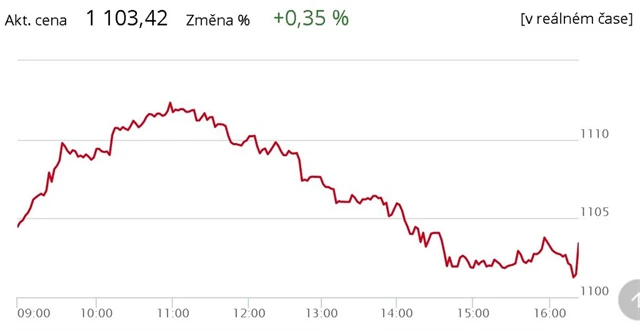Pražská burza ve čtvrtek přidala 0,35 %, dařilo se hlavně akciím Komerční banky