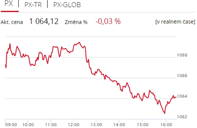 Pražská burza zakončila týden se ztrátou 0,03 % na 1 064,12 bodu. Dolů ji táhly akcie energetické skupiny ČEZ a Erste Group Bank, dařilo se naopak Komerční bance a Monetě Money Bank. Objem obchodů byl s 635 miliony korun nadprůměrný.