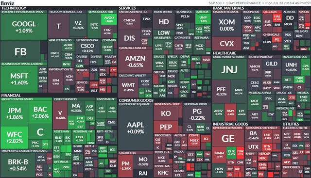 Dařilo se zejména finančnímu odvětví, technologiím a telekomunikacím. Dolů naopak zamířily sektor veřejných služeb nebo průmyslové odvětví.