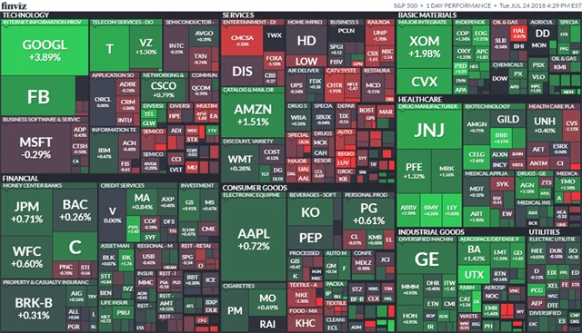 Akcie firmy Alphabet (+3,89 %) stouply až na nový rekord 1 275 USD. Společnost v pondělí po konci obchodování oznámila čtvrtletní výsledky hospodaření, které překonaly očekávání analytiků. Posílily i další velké technologické firmy - Facebook (+1,78 %) a Amazon (+1,51 %), které zveřejní kvartální výsledky hospodaření později tento týden.