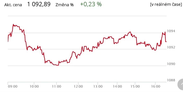 Pražská burza ve čtvrtek posílila, pomohl jí růst akcií ČEZ nebo Monety Money Bank