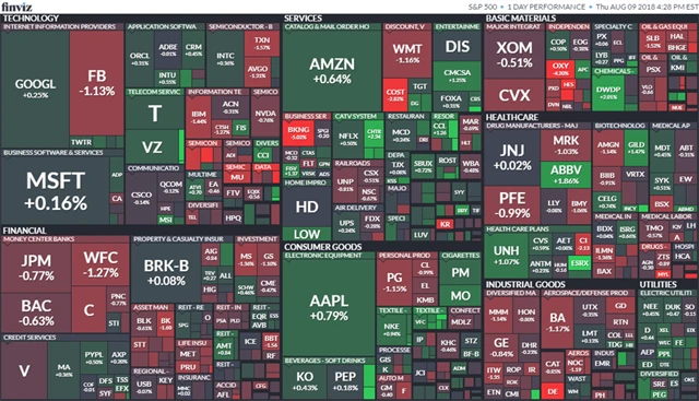 Index Dow odepsal 0,29 % na 25 509,23 bodu, širší S&P 500 se snížil o 0,14 % na 2 853,58 bodu a index technologického trhu Nasdaq Composite stoupl o 0,04 % na 7 891,78 bodu. Benchmark S&P 500 v úvodu obchodování útočil na historické maximum 2 872,87 bodu z letošního ledna, dolů jej však před závěrem seance stáhly sektory energetiky a financí.
