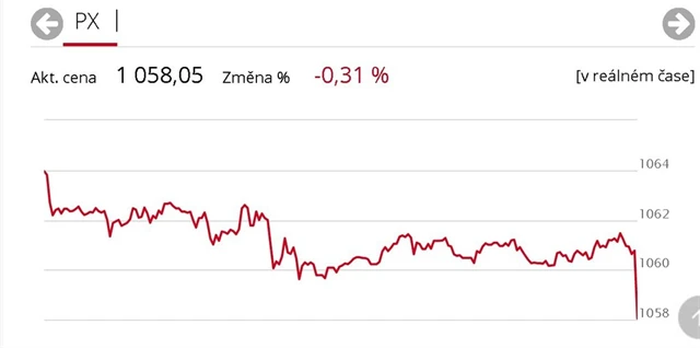 Pražská burza v pátek opět oslabila, index PX klesl o 0,31 % na 1 058,05 bodu. Ztratila většina hlavních emisí, včetně akcií bankovní skupiny Erste nebo energetické firmy ČEZ. Za celý týden index PX klesl o 1,4 %.