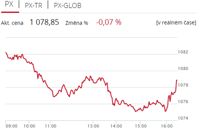 Pražská burza ve středu nenavázala na dvě předcházející ziskové seance, když index PX odevzdal 0,07 % na 1 078,85 bodu. Nedařilo se cenným papírům Stock Spirits a mediální CME, výrazněji stouply pouze Erste Group Bank, Avast a textilka PFNonwovens. Objem obchodů byl s 431 miliony korun podprůměrný.