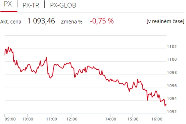 Pražská burza začala nový týden v mínusu, když index PX odepsal 0,75 % na 1 093,46 bodu. Dolů burzu stáhly zejména akcie energetické skupiny ČEZ, Monety Money Bank a Erste Group Bank. Dařilo se naopak mediální CME. Objem obchodů byl s 523 miliony korun mírně podprůměrný.