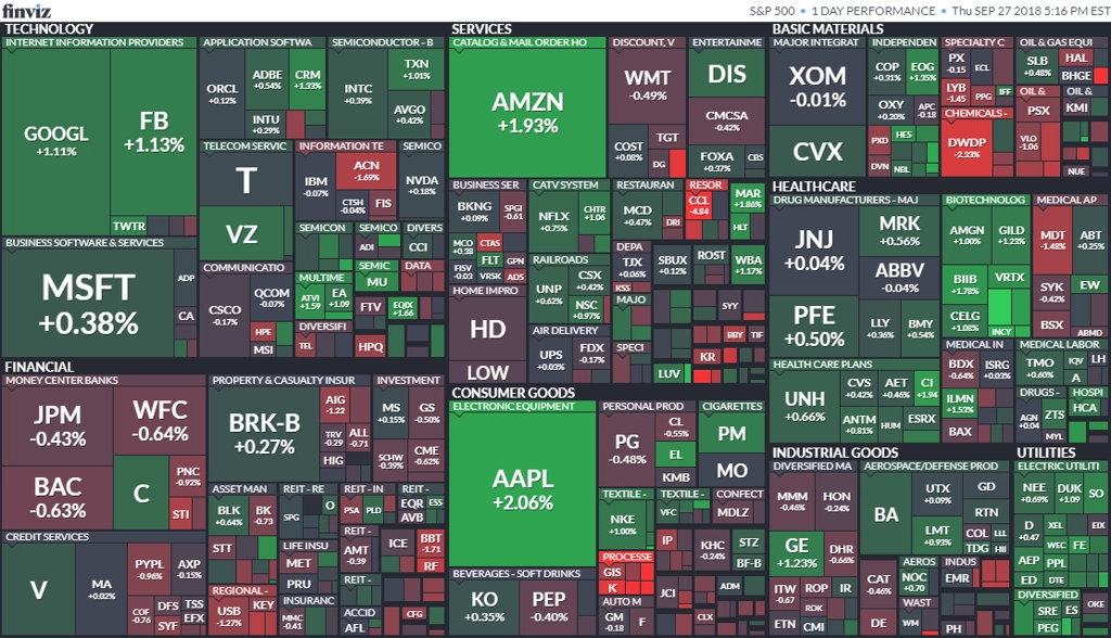 Index Dow stoupl o 0,2 % na 26 439,93 bodu, širší index S&P 500 vzrostl o 0,28 % na 2 914 bodů a index technologického trhu Nasdaq Composite se zvýšil o 0,65 % na 8 041,97 bodu. Index volatility VIX klesl o 3,72 % na 12,41 bodu a výnos 10letých vládních dluhopisů USA se mírně zvýšil na 3,05 %.