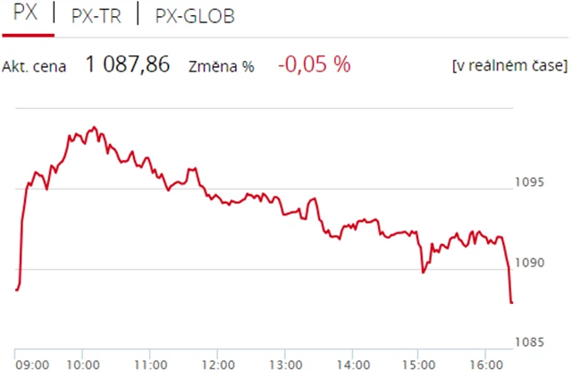 Pražská burza ve středu nenavázala na zisky z předcházejících dvou seancí, když index PX odepsal 0,05 % na 1 087,86 bodu. Dolů burzu stáhly zejména akcie energetické skupiny ČEZ, dařilo se však mediální CME. Objem obchodů byl s 662 miliony korun nadprůměrný.