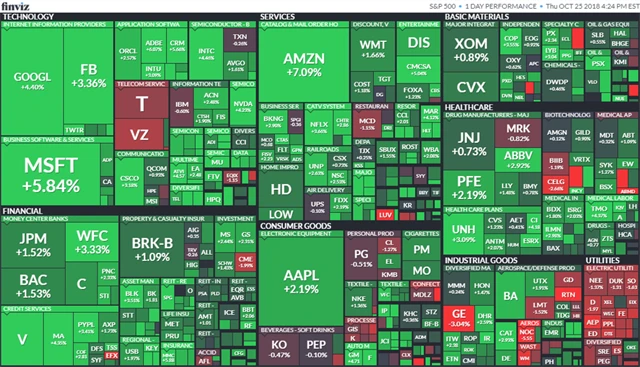 Akcie Microsoftu zdražily o 5,84 % díky středečním výsledkům hospodaření, které překonaly očekávání analytiků. Posilovali také výrobci čipů, i když slabý výhled na letošní rok poslal prudce dolů akcie firmy Advanced Micro Devices (-15,45 %). Příznivé hospodářské výsledky zaznamenaly i společnosti Intel, Visa, Whirlpool, Twitter a American Airlines.