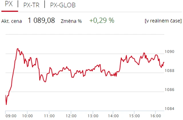 Pražská burza v pátek potřetí v řadě stoupla, index PX si připsal 0,29 % na 1 089,08 bodu. Nahoru burzu táhly akcie Komerční banky a Monety Money Bank, proti trendu šel telefonní operátor O2 Czech Republic. Objem obchodů byl s 446 miliony korun podprůměrný.