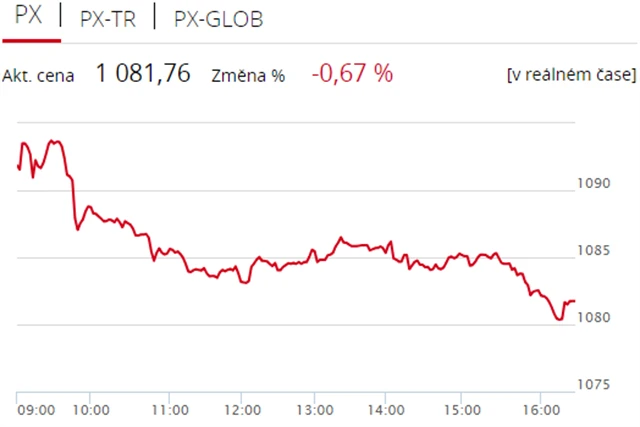 Pražská burza začala nový týden negativně, když index PX odepsal 0,67 % na 1 081,76 bodu. Dolů burzu stáhly zejména akcie Komerční banky a polostátní společnosti ČEZ, dařilo se naopak pojišťovně VIG. Objem obchodů byl s 382 miliony korun podprůměrný.