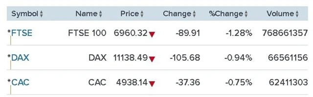 Evropské akcie - 22. listopadu 2018, zdroj: CNBC