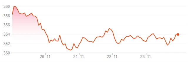 STOXX Europe 600 - týden do 23. listopadu 2018, zdroj: Google