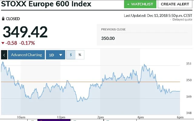 Celoevropský akciový index STOXX Europe 600 skončil o 0,16 % níže než ve středu. Evropská centrální banka po zasedání svého vedení potvrdila, že program kvantitativního uvolňování, jenž během čtyř let napumpoval do evropské ekonomiky asi 2,6 bilionu eur, bude tento měsíc ukončen.