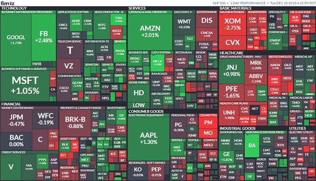 Z jednotlivých sektorů se dařilo technologiím, které získaly přibližně 1,5 %. Boeingu zvýšení dividendy a oznámený odkup akcií pomohly k růstu o 3,77 %. Nejhůře si naopak vedl energetický sektor pod vlivem poklesu cen ropy.