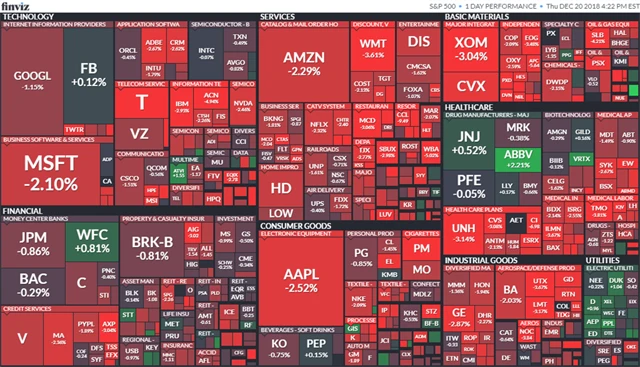 Index Dow Jones již během prosince odepsal 10 %, což je nejhorší výsledek za téměř deset let. Také pro S&P 500 je prosinec letos nejhorším měsícem roku, a to se zatím nikdy nestalo. Společnosti z tohoto indexu za tento měsíc ztratily na tržní hodnotě celkem 2,39 bilionu dolarů.