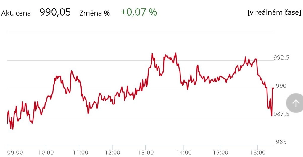 Index pražské burzy PX skončil de facto na zelené nule, když při zisku 0,07 procenta uzavřel čtvrteční obchodování na hodnotě 990,05 bodu. Největším tahounem byla Erste Group Bank, jež si připsala přes tři procenta. Dařilo se také akciím pojišťovny Vienna Insurance Group a textilce PF Nonwovens. Jejich zisky převážily nad ztrátami státní energetické firmy ČEZ i telekomunikačního operátora O2 C.R. Nejobchodovanější emise dne, Komerční banka, vymazala dopolední ztráty a zakončila seanci na nule. Zobchodovaný objem čítal přes 674 milionů korun.