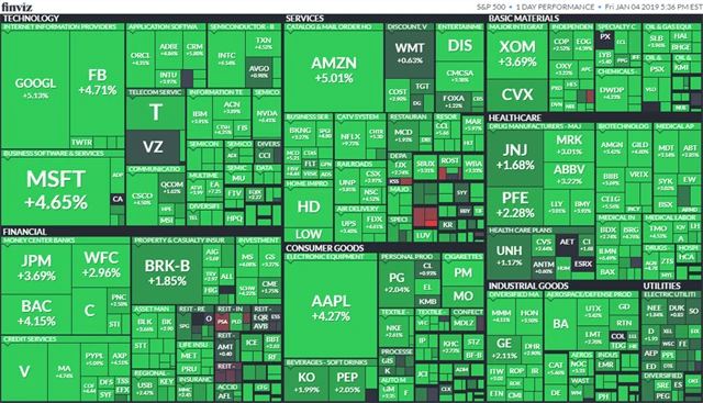 Posílilo všech 11 sektorů indexu S&P 500. Nejlépe si vedly technologické podniky, které v předchozí seanci zaznamenaly nejvýraznější propad za sedm let kvůli zhoršení výhledu Applu. Ten v pátek také posílil, a to o 4,27 %.