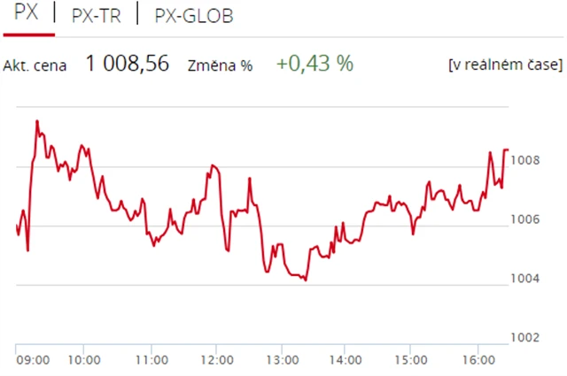 Pražská burza začala nový týden pozitivně, když index PX stoupl o 0,43 % na 1 008,56 bodu. Dařilo se zejména tabákové firmě Philip Morris ČR, jejíž akcie stouply o 2,69 % na 14 500 Kč. Proti trendu šly naopak cenné papíry pojišťovny VIG. Objem obchodů byl s 403 miliony korun podprůměrný.