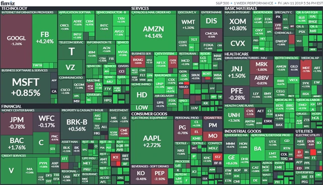 Za celý týden všechny tři indexy stouply. Dow si připsal 2,4 %, S&P 500 stoupl zhruba o 2,5 % a Nasdaq Composite se zvýšil téměř o 3,5 %.