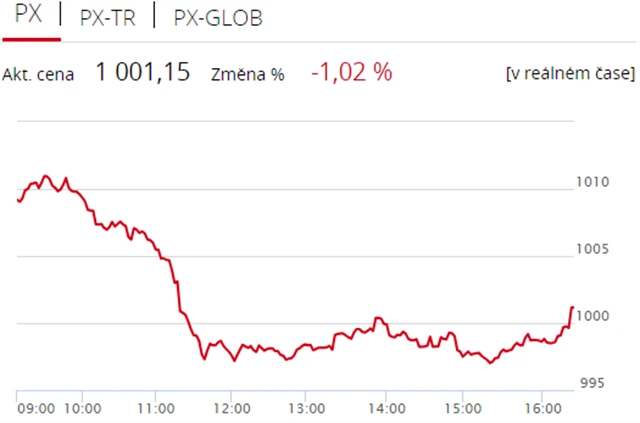 Pražská burza v pondělí prohloubila ztrátu ze závěru minulého týdne, když index PX přišel o 1,02 % na 1 001,15 bodu. Dolů burzu stáhly zejména akcie Erste Group Bank, proti trendu šla pouze textilka PFNonwovens. Objem obchodů byl s 380 miliony korun podprůměrný.