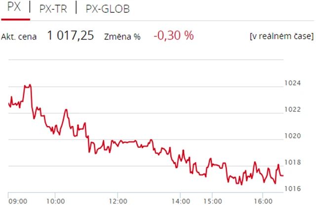 Pražská burza v pondělí nenavázala na růst z minulého týdne, když index PX odepsal 0,3 % na 1 017,25 bodu. Dolů burzu stáhly zejména akcie Erste Group Bank a skupiny ČEZ, dařilo se naopak antivirové firmě Avast. Objem obchodů byl s 209 miliony korun výrazně podprůměrný.