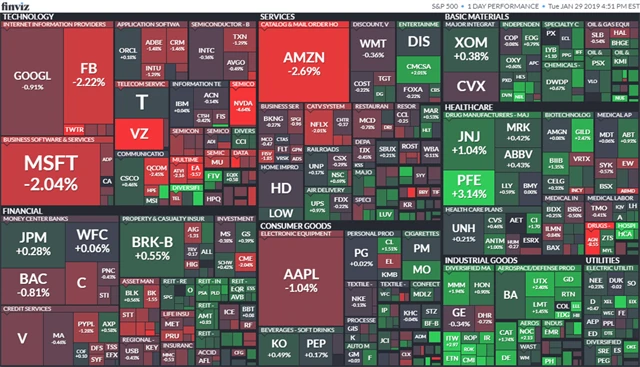 Klesly také akcie společností Amazon (-2,69 %), Facebook (-2,22 %) a Microsoft (-2,04 %), které rovněž mají zveřejnit tento týden výsledky hospodaření. Naopak cenné papíry podniku 3M (+1,94 %) díky lepším hospodářským výsledkům zpevnily.