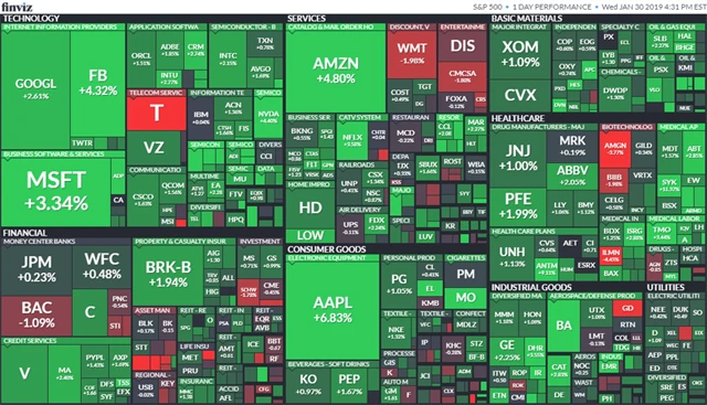 Výsledky společností Intel či Caterpillar z posledních dnů signalizovaly, že firemní sektor začíná pociťovat zpomalování čínské ekonomiky, poznamenané obchodními spory s USA. Ve středu ale výsledky podniků trh podpořily. Díky lepším čtvrtletním výsledkům například akcie Apple přidaly 6,83 %, cenné papíry Boeingu si připsaly 6,25 %.