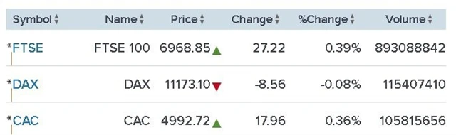 Celoevropský akciový index STOXX Europe 600 se skončil na zelené nule, přičemž jednotlivé sektory a hlavní burzy zakončily smíšeně. Hlavní index londýnské burzy FTSE 100 si připsal 0,39 procenta, německý DAX odepsal 0,08 procenta a francouzský CAC 40 si polepšil o 0,39 procenta.